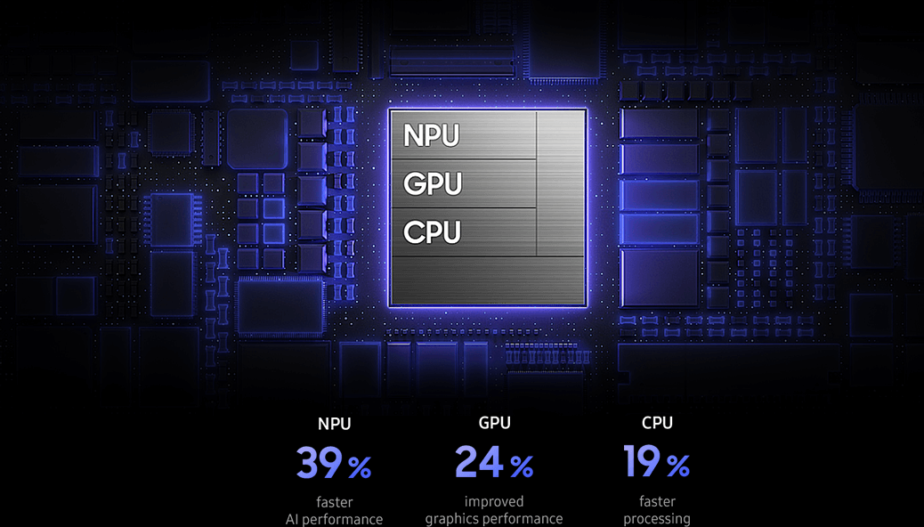У смартфоні встановлений найновіший і найпотужніший фірмовий процесор, який дозволяє максимально розкривати потенціал Galaxy AI, що особливо відчуватиметься при виконанні складних багатозадачних операцій. У процесорі використовується кастомізований покращувач зображення — він здатний збільшувати чіткість та плавність відтворення у застосунку та контенті в режимі реального часу.