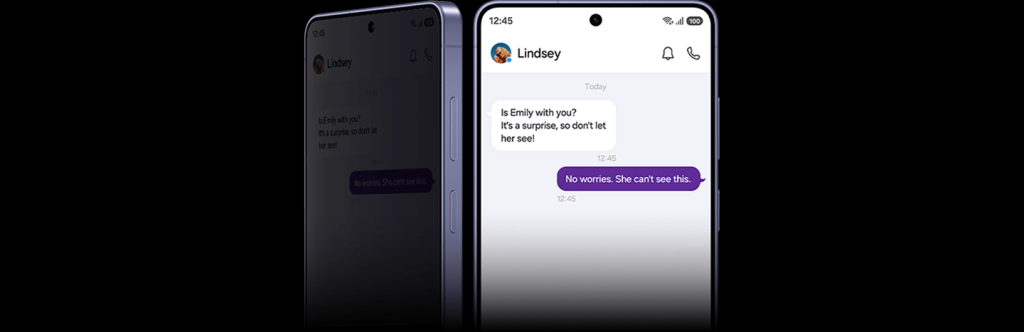 Тепер екран вашого смартфона зможе забезпечити додаткову приватність завдяки ексклюзивній функції Privacy Display. Вам потрібно просто активувати її, і функція використовує інноваційні технології для захисту вашої конфіденційної інформації. Privacy Display може приховувати весь екран так, щоб з боку на ньому не можна було розглянути важливі дані, але ви самі зможете бачити все що вам потрібно. Також ви можете окремо вибрати, що вам потрібно приховати, наприклад, певні програми, вхідні повідомлення, і особливо паролі або PIN-коди під час їх введення на екрані блокування, в налаштуваннях або для доступу до захищеної папки.