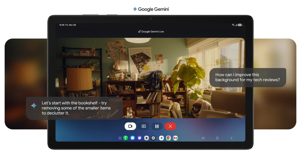 Діліться наживо камерою з Gemini на Galaxy Tab A11+, щоб отримати поради щодо того, що бачите. Просто утримуйте бічну клавішу, щоб почати, та діліться екраном або зображенням з камери з Google Gemini, щоб отримати рекомендації. Ведіть вільну розмову, яка допоможе отримати потрібні відповіді.