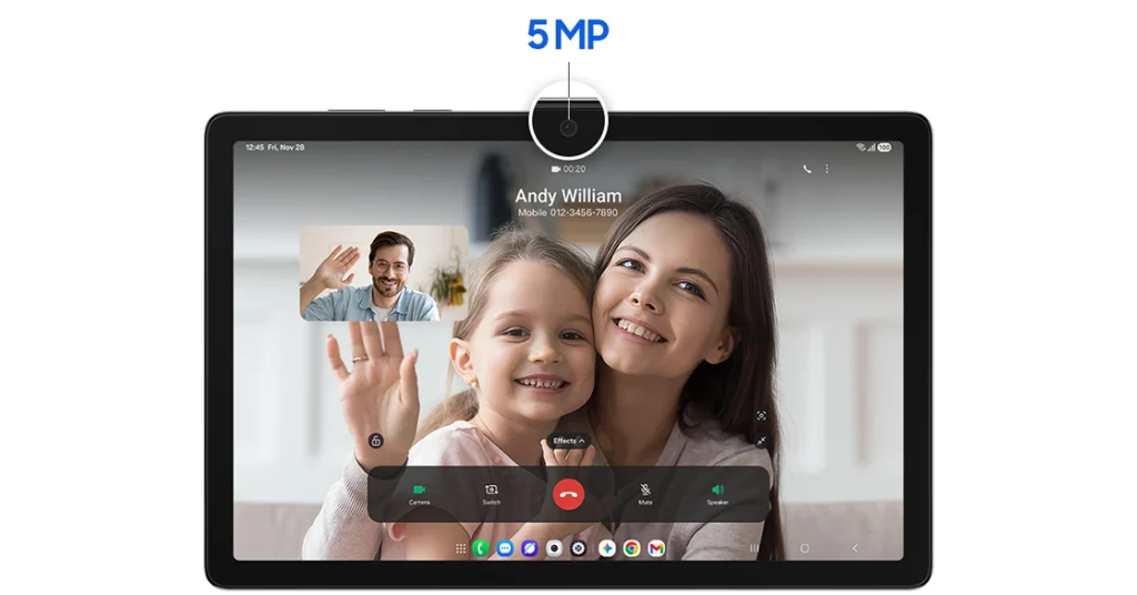 Будьте ближче. Galaxy Tab A11+ оснащений фронтальною камерою на 5 МП для чіткіших і якісніших відеодзвінків. Попри те, чи спілкуєтеся ви з родиною, чи працюєте в команді, покращена чіткість дозволяє бачити кожну посмішку і вираз обличчя у реалістичних деталях.